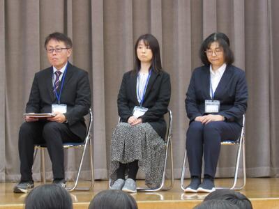 着任式で3名の新しい先生方をお迎えし、生徒会長から歓迎の言葉の後、一人一人からお話をいただきました。3名の先生方、佐原第五中学校をどうぞよろしくお願いします。