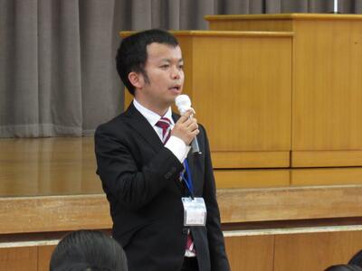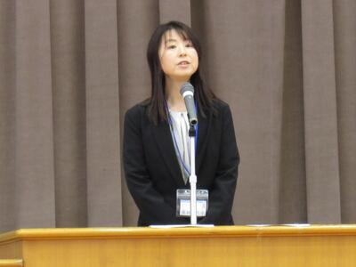 「本日はこの場をお借りして皆さんに感謝をお伝えするとともに、これからのエールを送りたいと思います。4年間本当にありがとうございました。この4年間を佐原第五中学校で過ごすことができて本当に良かったです。特に卒業生に対しては3年間成長を見守ることができて良かったです。みんなが私の初の卒業生であることは一生忘れません。またバスケットボール部の皆さんに対しては、みんながバスケットボールに熱心に取り組んでくれたからこそ、自分も頑張ろうと思えたし、バスケットボールが更に好きになりました。本当に感謝しています。