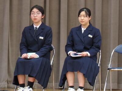 3年生になると、私たちは学校の中心となる学年になります。来年度は、勉強ができるだけでなく、周りに優しく、仲間から信頼される人になれるよう努力していきたいです。そして学年全体としても、一人一人が責任感をもち、学校を支える3年生になれるよう頑張りたいと思います。