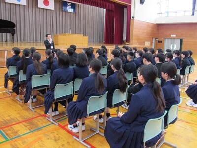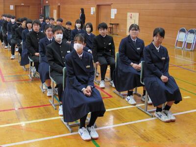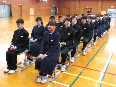 3月25日(水)令和7年度修了式が行われました。節目として心を引き締めて、式に臨むことができました。生徒の皆さん、1年間の振り返りから新年度に向けての具体的な目標をしっかり持って、新年度をスタートしましょう!