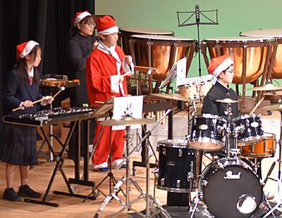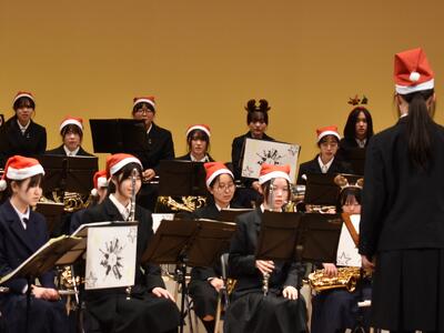 12月14日(日)神崎ふれあいプラザにおいて、神崎町教育委員会主催『クリスマスコンサート2025』が実施され、本校の吹奏楽部も初参加しました。本校吹奏楽部は、夏の吹奏楽コンクールや香取郡市小・中学校児童生徒音楽発表会に神崎中学校と合同で参加しています。