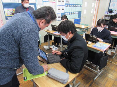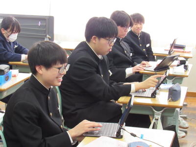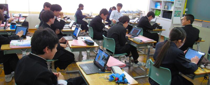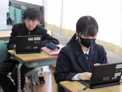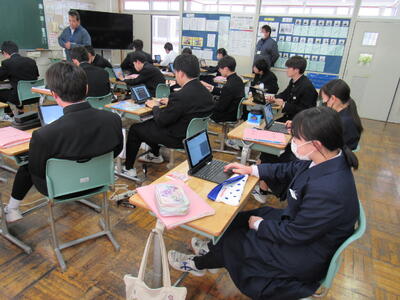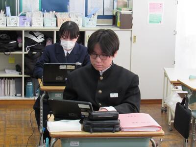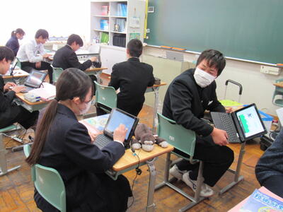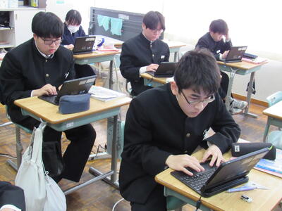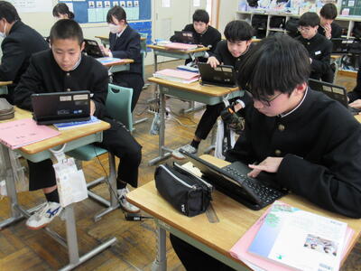 授業の様子(2年 技・数) 投稿日時 : 03/19 五中管理者 カテゴリ:今日の出来事 2年生の授業(1組:技術、2組:数学)の様子です。生徒の皆さん、どの教科も年度末の大事な学習ですので、頑張っていきましょう。 【2年1組 技術】 プログラミングの基礎的なしくみを学んでいます。一人一人、興味をもって集中して取り組んでいます。 【2年2組 数学】 データの傾向の読み取り方について、『箱ひげ図』からどのようなことが読み取れるか、学習しています。
