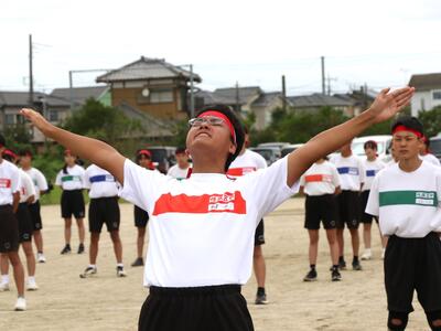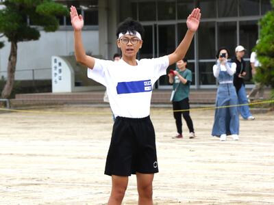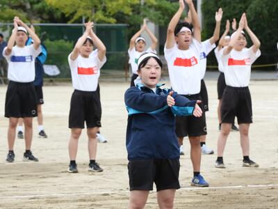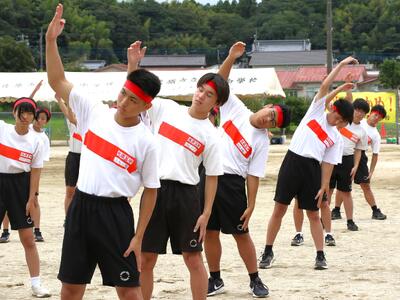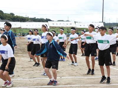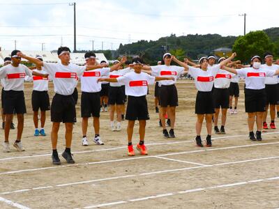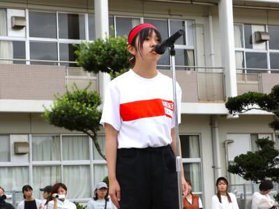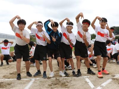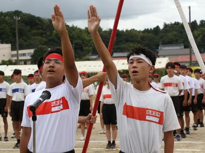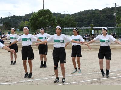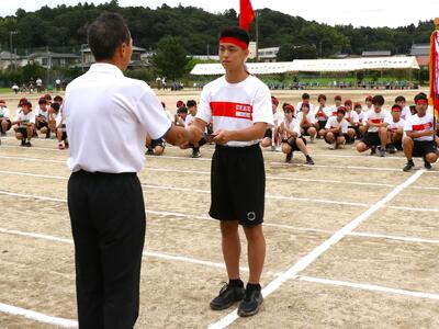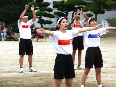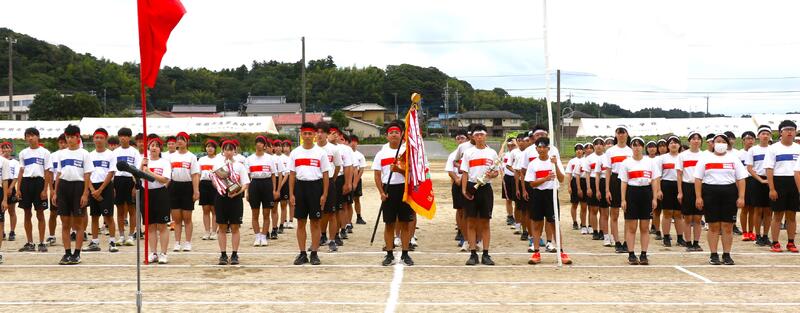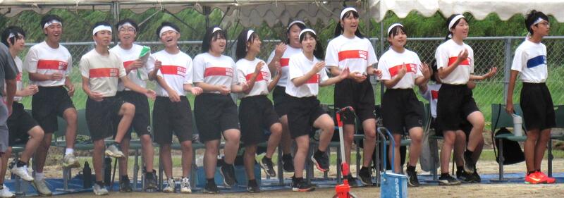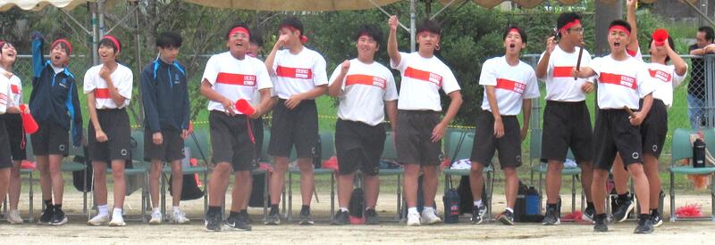 生徒一人一人が、運動の得手不得手関係なく全力で取り組み、自分たちでつくり上げたすばらしい体育祭になりました。特に応援合戦は、紅組・白組ともにアイデアと団結力を生かしたお互いに賞賛できる感動の演出でした。