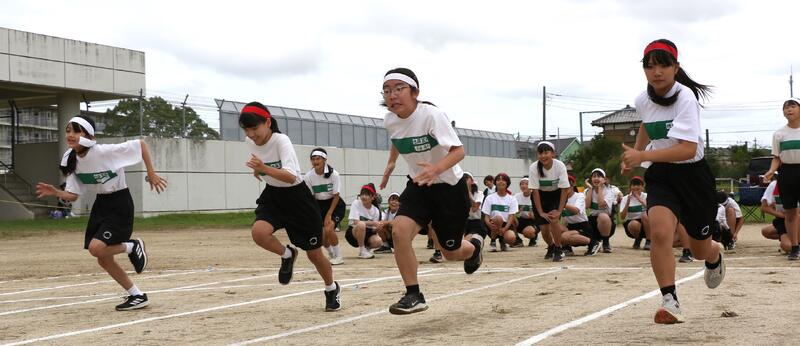 各学年100m走の様子です。走りが得意・不得意にかかわらず、一人一人一生懸命ゴールまで走りきりました。とても大事なことです。