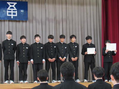 卒業式予行の後、各種賞状伝達・賞状披露を行いました。生徒の皆さん、活躍おめでとうございます。
