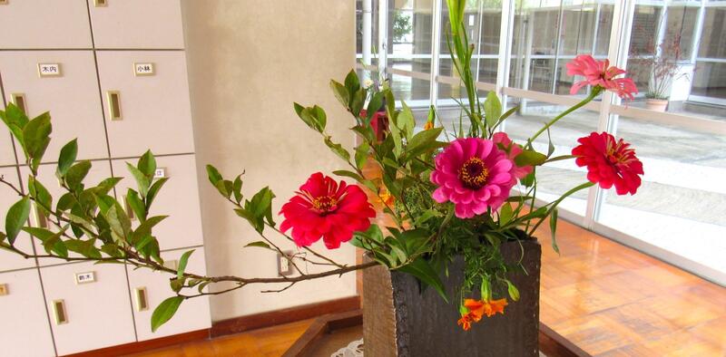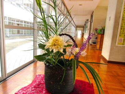 10月に入りだいぶ過ごしやすくなってきました。玄関等に大戸地区の坂下さんが定期的に季節の花を生けてくれています。本当にありがたいことです。生徒の皆さん、足を止めて季節の花々に心を和ませてみてはどうでしょうか。