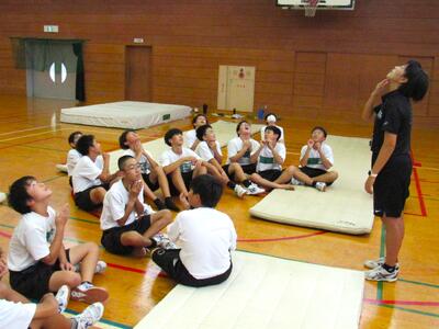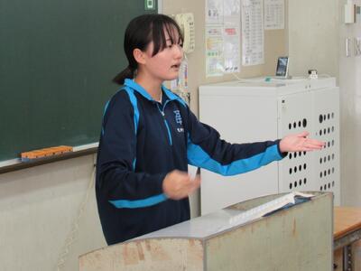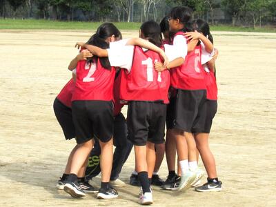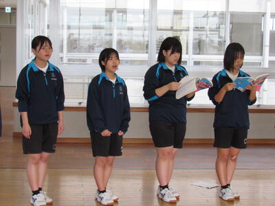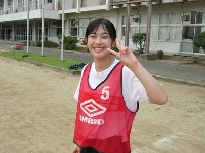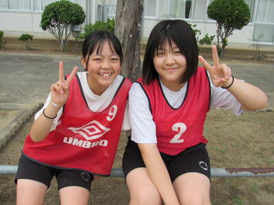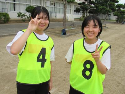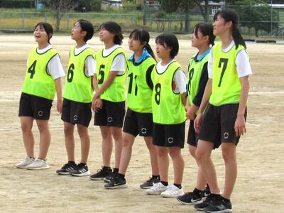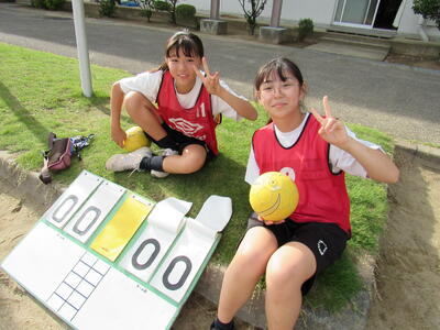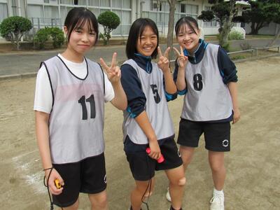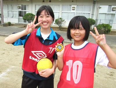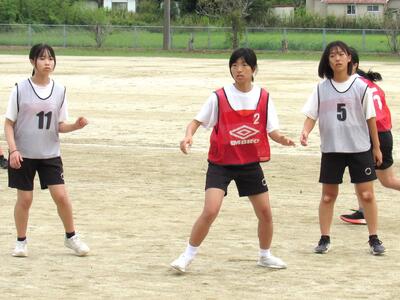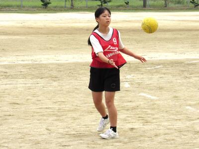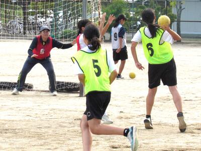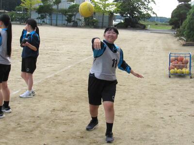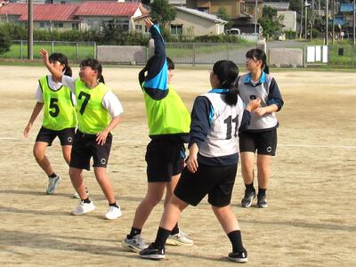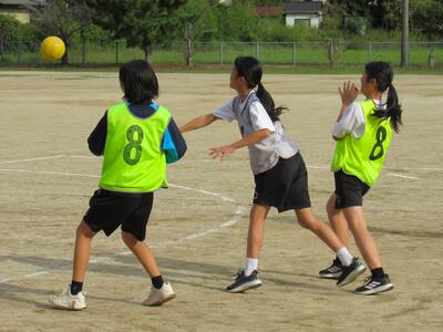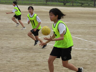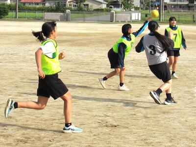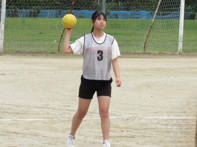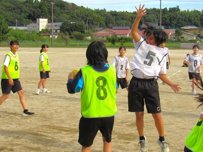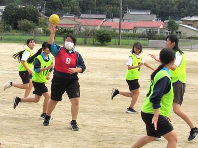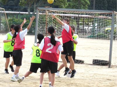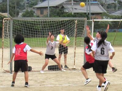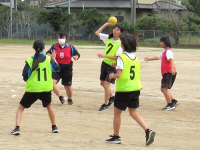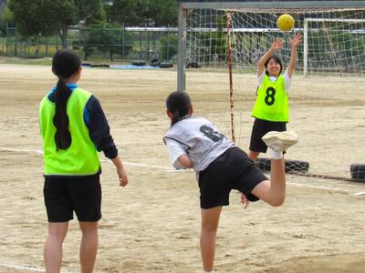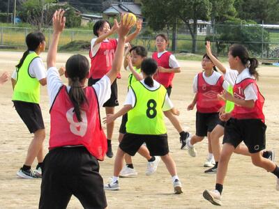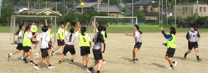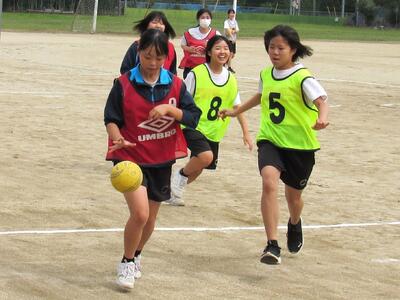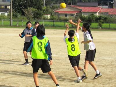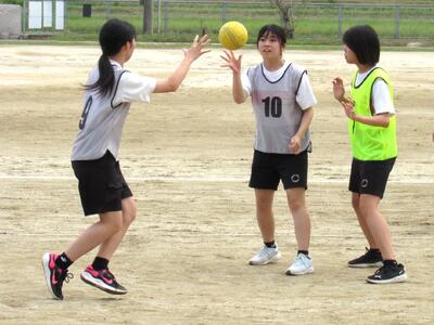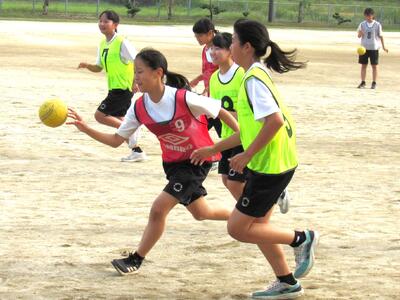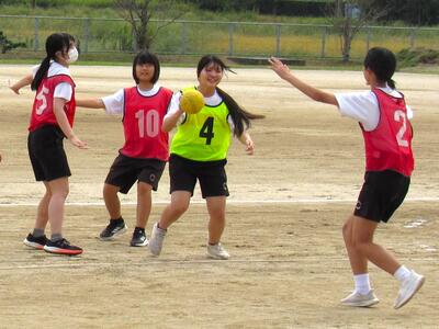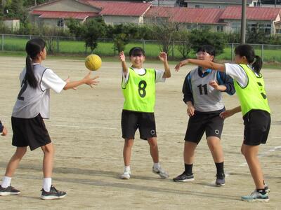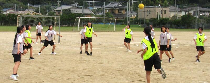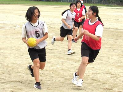 女子は、ハンドボールに取り組んでいます。チームワークを大切に楽しんでいます。
