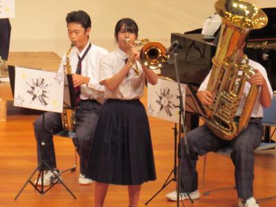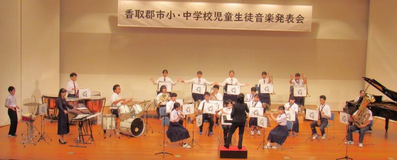 10月7日(火)香取郡市小・中学校児童生徒音楽発表会が佐原文化会館で開催され、佐原第五中学校は神崎中学校と合同で出場しました。「Mrs. GREEN APPLEメドレー」を披露し、会場中が手拍子で楽しい雰囲気に包まれました。演奏者と観客が一つになったすばらしい発表でした。