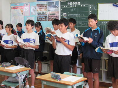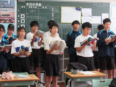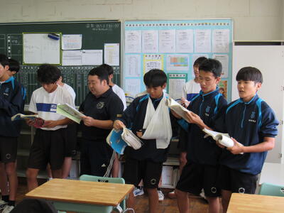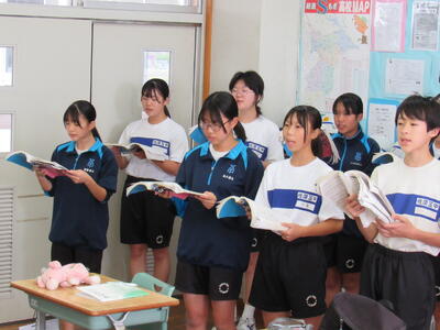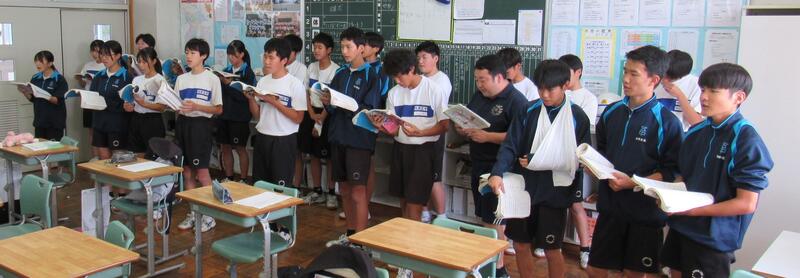文化祭合唱コンクールに向けて、どのクラスも練習に熱心に取り組んでいます。合唱練習を通して、心を一つにして目標に取り組んでいく団結力・協力性で、学級の絆を更に深めていってほしいと思います。