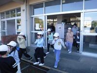 「訓練 訓練 放送をよく聞いて、落ち着いて行動してください。ただいま配膳室から火災が発生しました。児童は全員校庭に避難しなさい。」