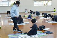 広い体育館なのですが、中はストーブの音だけが響くほど静かで、全員が集中して取り組んでいる様子がよく分かりました。