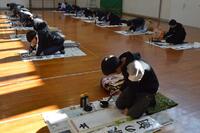 3年生以上は体育館に集まり、3・4校時を使って書き初めに取り組みました。業間から準備を始めましたが、子どもたちがテキパキと行動したおかげで、予定より早く書き始めることができました。