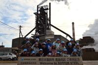 続いてバスを降り、高炉の前で記念撮影を行った後、全長700mにも及ぶ圧延工場を見学しました。熱せられた鉄の塊が薄く延ばされていく様子は迫力があり、子どもたちは目を輝かせていました。熱した鉄が近くを通るたびに体が熱くなり、水で冷やされるとその熱気がすっと消えていくなど、視覚だけでなく肌でも製鉄の仕組みを体感することができました。