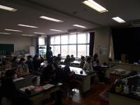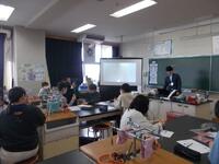 まず、全体会で、校長先生から中学校についてのお話を聞いた後、2グループに分かれ、中学校の先生方による英語と理科の授業を体験しました。