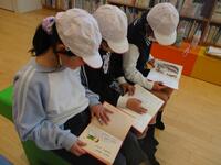 図書館では本を2冊借りる体験をしました。初めて図書館に入るという子や借り受けの経験が無い子たちは、まず、利用者カードを発行してもらます。