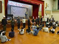 次に、全校でレクを行いました。「鬼滅じゃんけん」(6年生に連勝するとシールがもらえる)、「○○な6年生は誰だ?クイズ」(6年生に関する問題に挑戦するクイズ)、「無限列車じゃんけん」(じゃんけんで勝った人の後ろに負けた人がついていく)の3つです。