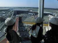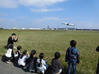 警備員さんに検査をしてもらい、空港内の見学用のバスに乗り換えて見学がスタートしました。係の人の説明を聞きながらバスで各地を移動し、通常は入れない場所にも入らせてもらうことができました。高いタワーの上や、滑走路脇で飛行機が飛び立つところの見学では、子どもたちから大きな歓声が上がっていました。