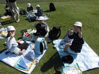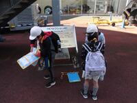 到着後、まず、外で昼食をとりました。少し風が強かったですが、秋晴れの空の下、楽しくお弁当を食べました。昼食後は、いよいよグループで見学です。見学は穴埋めワークシートとスタンプラリーシートを使って行いました。展示の解説を読んでワークシートの穴埋めをしたり、スタンプを探したりながら、楽しく見学ができました。
