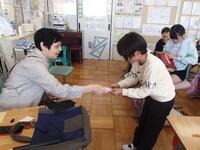最後に、講師の先生から、子どもたち一人一人の名前を点字で書いたシールをいただきました。中には実際に点字の表と比べて、「本当に○○って書いてある!」と声を上げる子どもの姿も見られました。