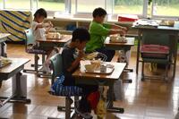 「訓練 訓練 放送をよく聞いて、落ち着いて行動してください。ただいま配膳室から火災が発生しました。児童は全員校庭に避難しなさい。」