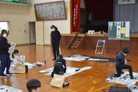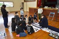 初めて筆を使って書き初めに挑戦する3年生は、道具の準備から筆の持ち方まで、細かく丁寧に教えていただきました。両学年とも、それぞれの文字の書き方や筆の使い方について、具体的な指導を受け、子どもたちの上達がはっきりと分かりました。