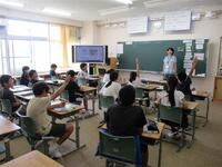 全体会で、校長先生から中学校についてのお話をしていただいた後、学校内を見学しました。