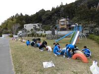 13日には各階のトイレを隅々まで丁寧に清掃し、16日には校庭のタイヤ遊具のペンキを塗り直してくれました。
