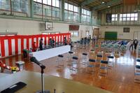 体育館では、清掃を行った後、椅子やテーブルの配置、紅白幕の取り付けなどを丁寧に進めました。