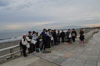 13日は、朝6時30分に集合して、アクアラインを経由して、鎌倉を目指してバスで移動しました。海ほたるの休憩では、集合写真を撮ったり、「ゴジラの足跡」などを見たりしました。