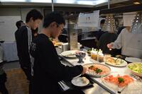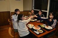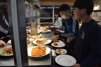入館式を行い、少し部屋でゆっくりと過ごした後、夕食へ。バイキング形式でメニューが豊富なこともあって、子どもたちは大喜び。驚くほどおかわりをする子もいました。