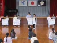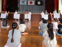 はじめに、代表児童へ「修了証書」を授与しました。続いて、各学年の代表児童による、後期学級目標の振り返り発表を行いました。どの学年も、目標に対する取組をよく話し合い、丁寧にまとめ、堂々とした態度で発表することができました。