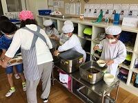 でも、給食当番さんたち、見事なチームワークで上手に配膳できました。