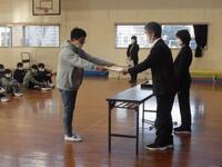 23日に全校集会を行いました。生徒指導担当の先生から冬休みの過ごし方について6年生と一緒にお話がありました。その後、表彰伝達を行いました。