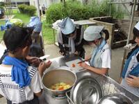 協力して、食器洗いから食材の準備、かまどの火の管理など、協力しながら活動できました。各班とも、カレーの調理も上手で、ご飯もほとんどこげずに上手に炊けました。調理後は、各班で仲良く食事ができました。