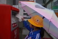 当日は小雨が降っており、傘をさしての移動となりました。郵便局についたら、一人ずつ、ポストに投函しました。