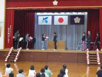 児童代表のお別れの言葉の後、転退職される先生方へ花束が贈られました。