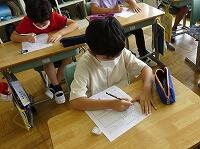 初めて聞く言葉や難しい説明もしっかりとメモし、自分の学習に生かそうとしていた5年生。
