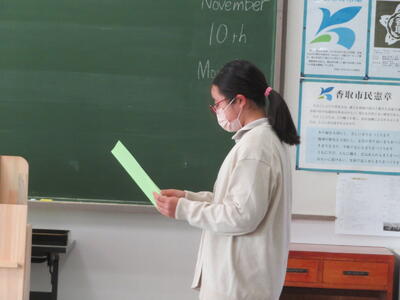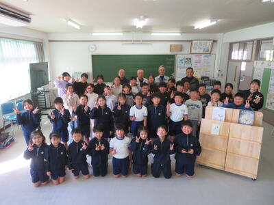 大人になって大工さんなど職人さんになって、毎日勉強しています。今でも本をたくさん読んでいます。ぜひ、香取小学校のみなさんもたくさん本を読んでください。そして、大きくなって香取小学校に恩返しをしてください。それだけが、私達の願いです。今日はありがとうございました。」
