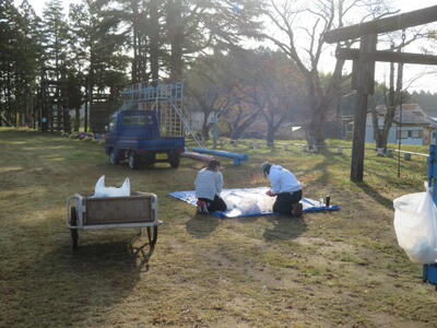 毎年8月22日、職工組合の皆様にアスレチック補修作業や校舎内外の環境整備を行っていただいております。今年度は「職工組合・PTA合同奉仕作業」として、熱中症予防に配慮しながら、地域の宝である子どもたちのために、多くの皆様に御参加いただきました。