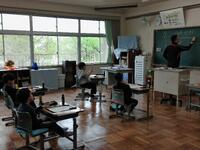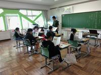 5、6年生は配膳を一緒にやって、それぞれの教室で食べます。