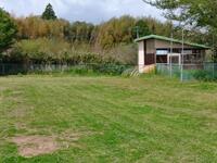広い校庭にたくさんの白いツメクサ、芝刈り機できれいにしてくれていました。