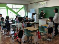 担任のM先生と退場!教室でもしっかりと話を聞いていました。