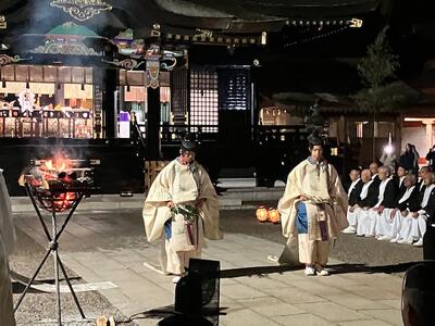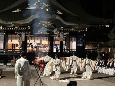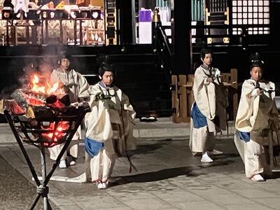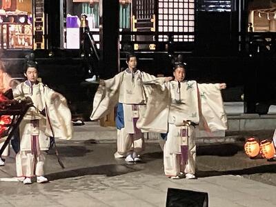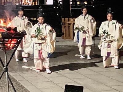 11月30日(日)こんばんは。今夜6時から1時間ほど香取神宮では大饗祭が行われました。夜、かがり火がともされ本殿の前で、厳かな雰囲気のもと行われた大饗祭。本校から3年生男子1名が大和の舞を披露。外気温も低くなり凛とした空気の中、感動的な舞が本殿の前で執り行われました。