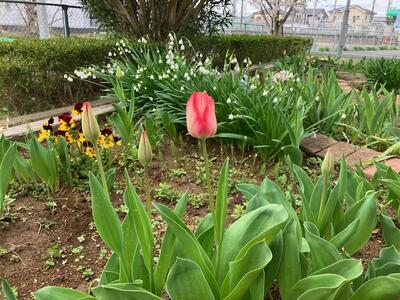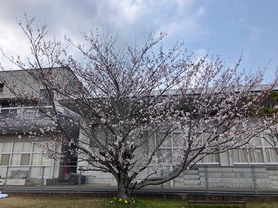 3月24日(火)みなさんお元気ですか。昨日に引き続き、本日もお弁当持参での授業実施、保護者の皆様にはご理解ご協力ありがとうございました。今年度も残すところあと1日となりました。校庭ではパンジーや芝桜が元気に花を咲かせ、チューリップはつぼみがふくらみ今にも開花しそうです。職員玄関先の中庭では、すでに5分咲きの桜の木もあります。体育館前の桜の木は1つか2つ、開花し始めています。4月はじめが満開の見ごろになりそうです。