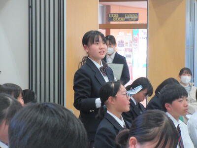11月28日(金)6時間目に生徒会人権集会を開きました。目的は2点。①お互いの違いを認め合うことの大切さを理解する。②自分自身を大切にし、他の人も大切にする気持ちをもつ。