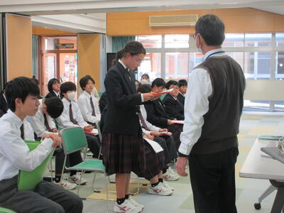 さて、今日の香取中は「かとらぼ」の日。全校で朝の時間を使って読解力向上に向けた教科書の視写を行いました。今回は社会。ちなみに3年生の視写は公民分野。労働組合や労働組合法、労働関係調整法についての説明を書き写しました。
