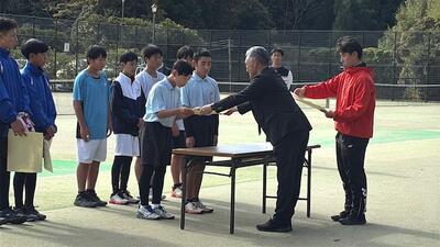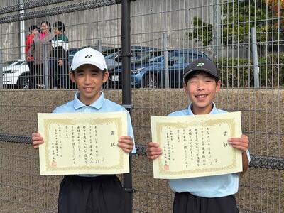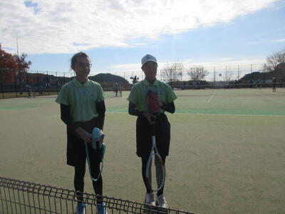 11月29日(土)みなさんお元気ですか。東総運動場ソフトテニスコートで千葉県U13ソフトテニス選手権大会香取予選会が開催されました。本校からソフトテニス部の1年生男子2組、女子1組が出場。日頃の練習の成果を存分に発揮し、男子ペア1組が準優勝を果たしました!また、その他2組のペアも1勝することができ、確かな手応えをつかんだ大会となりました。今回の大会には2年生もお手伝いで会場に来て、応援をはじめいろいろな面でサポートしてくれました。ありがとうございました。保護者の皆様には寒い中、お越しいただき応援等ありがとうございました。