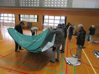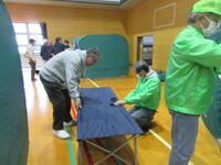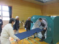 11月29日(土)午後1時30分から3時30分まで体育館を会場に明日行われる津宮地区防災訓練の準備を行いました。本校防災倉庫、水の郷小防災倉庫から、備蓄品等を運び出したり、室内テントや簡易ベッドなどの設置方法を練習したりしました。明日の津宮地区防災訓練本番に向けて準備万端です。