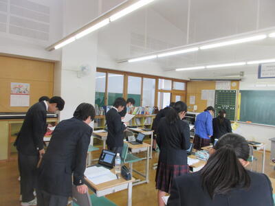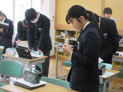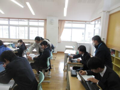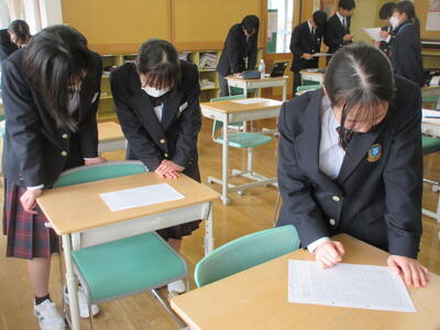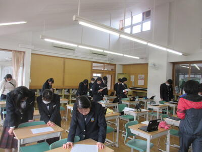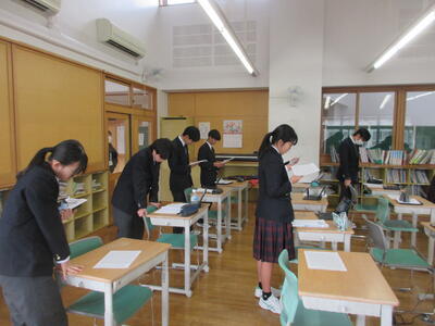 1月16日(金)6時間目、私立高校を受験する生徒のみなさんを対象に、事前指導を行いました。これまで頑張ってきたことを本番の入試で発揮できるよう学校長、学年主任からメッセージをお伝えしました。その後、学校別に分かれて交通手段や持ち物など最終確認を行いました。