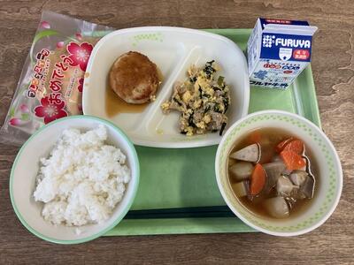 ちなみに今日から給食が開始。2,3年生は給食をとって入学式に臨みました。献立は牛乳に黒糖パン、アンサンブルエッグに鶏肉のチリンドロン、グリーンサラダ(イタリアンドレッシング)。チリンドロンとはスペイン北東部のアラゴン地方の郷土料理。お肉、タマネギ、トマト、ピーマンなどの炒め煮です。名前の由来はスペイン語でカルタ遊びを表し、色とりどりの野菜がカルタを散らしたように見えることから名付けられました。